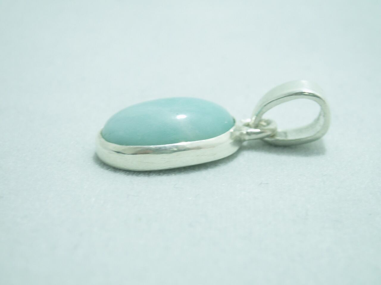 オーバル型のアマゾナイトを純銀土台に覆輪留めしたペンダントトップです。